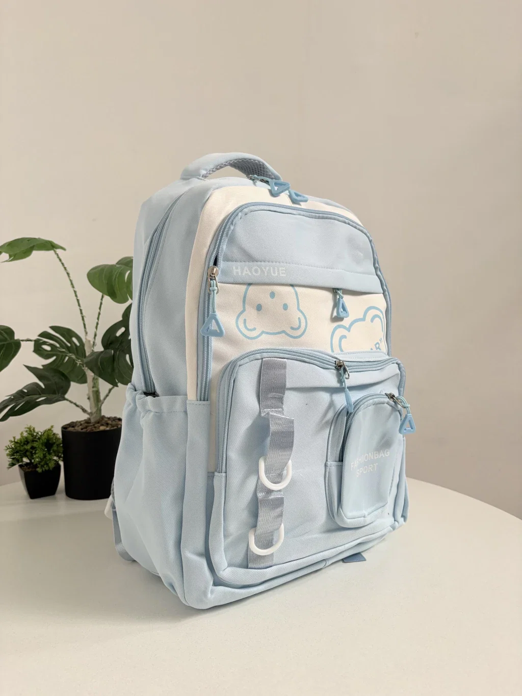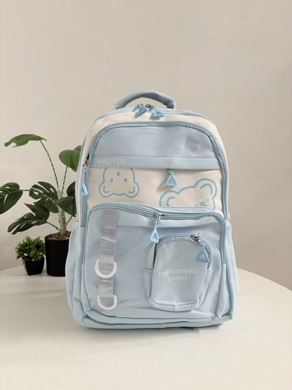 Esta mochila es la combinación perfecta de ternura y practicidad. Con un diseño en tonos rosa pastel y blanco, destaca por sus detalles delicados como los cierres en forma de corazón y los tiernos motivos de ositos, que le dan un aire muy dulce.