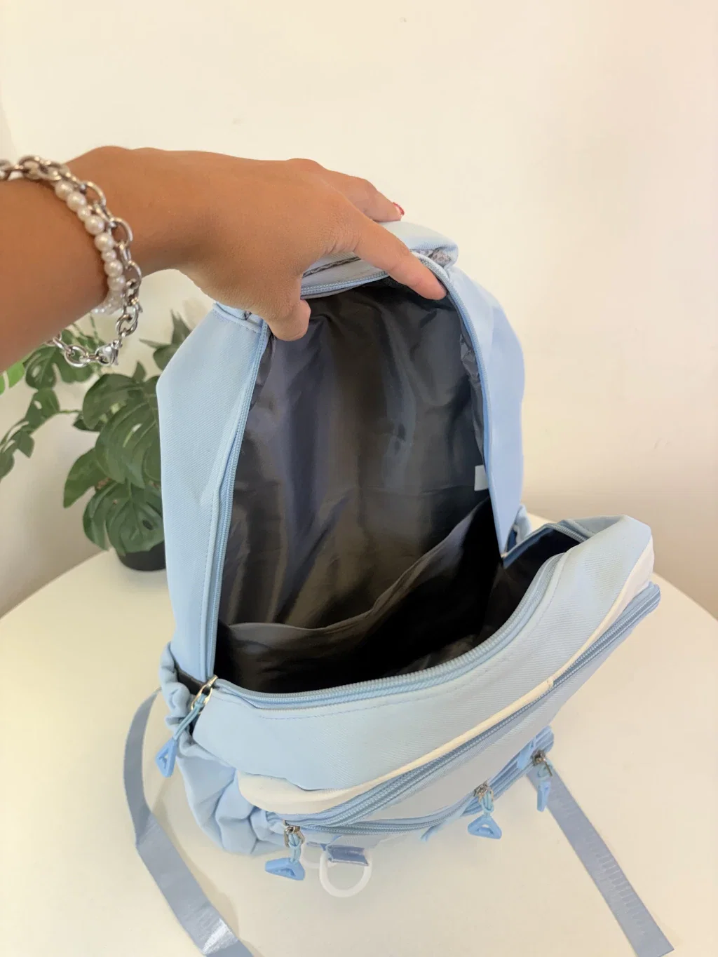 Gran capacidad: Cuenta con múltiples compartimentos frontales para organizar todo con facilidad.