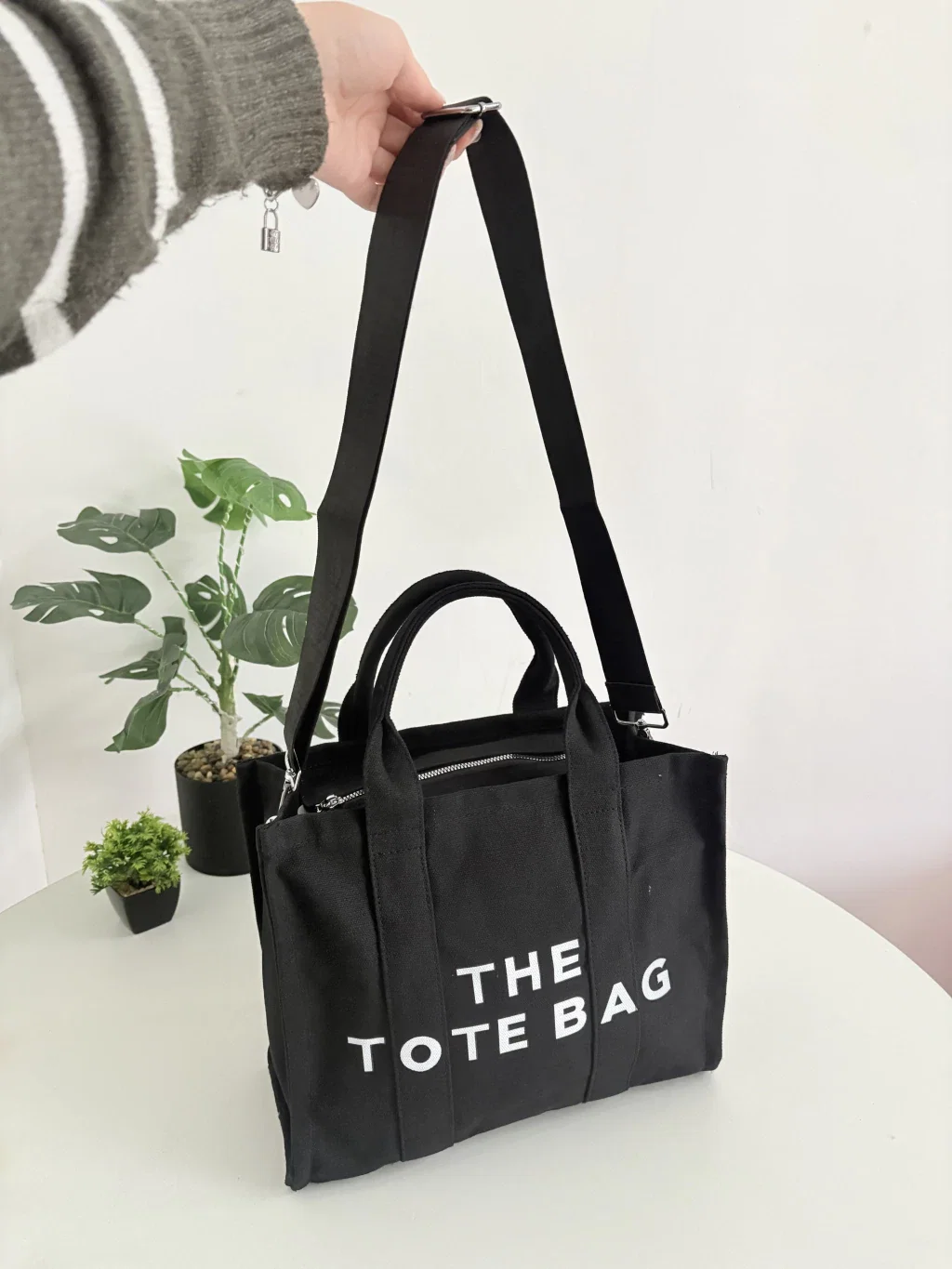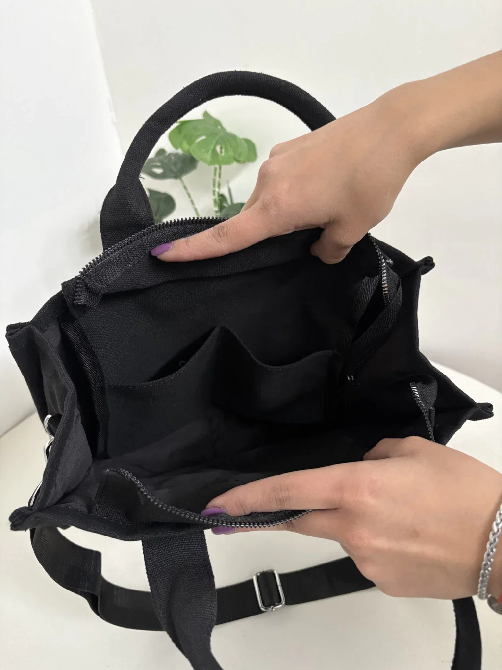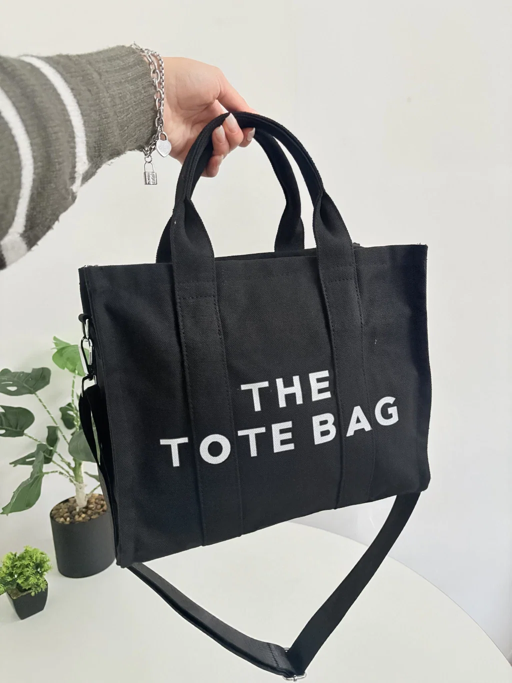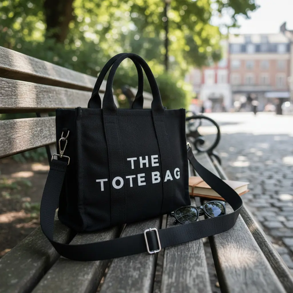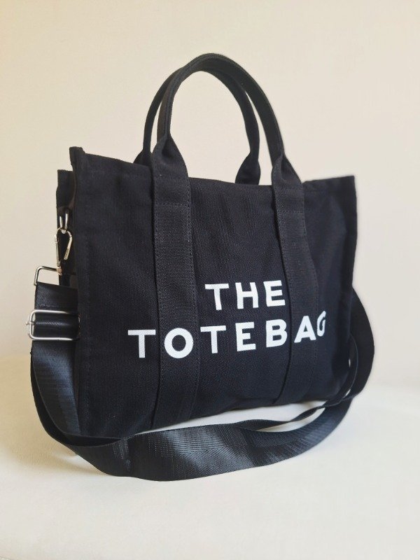 Esta Tote Bag de tela es la reina de la practicidad. Con su diseño cuadrado y estructurado en color negro, es esa compañera ideal para todos los días: te sirve para el laburo, la facu o para salir a dar una vuelta el finde. Es liviana, resistente y tiene ese look relajado que queda bien con todo.